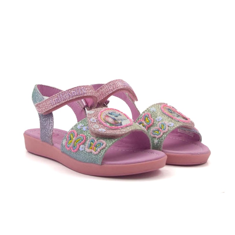 Sandalino di punta della linea UNICORNO firmato Lelli Kelly, realizzato in una fantasia multicolore con design ad unicorni, impreziosito dalle decorazioni in glitter e pailletes. Doppio strappo per rendere comoda la calzata. In regalo la fantastica collana.