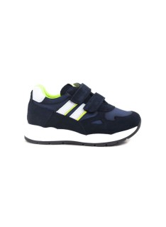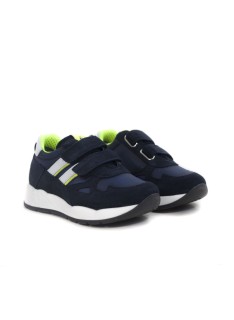 Sneaker da ragazzo realizzata in camoscio con chiusura in velcro e inserti in pelle a contrasto. Made in Italy