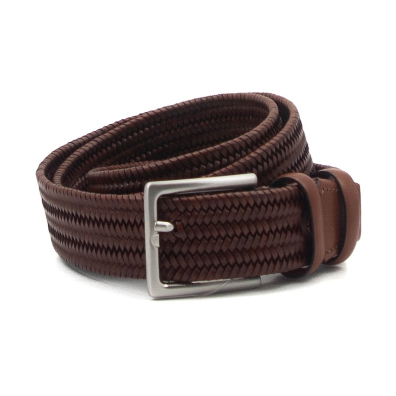 Cintura realizzata in vera pelle elasticizzata ed intrecciata made in Italy. Fibbia cromata; lunghezza regolabile 105 cm - 120 cm e larghezza 3.5 cm.