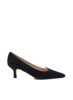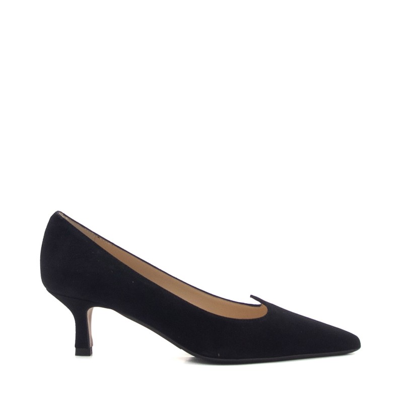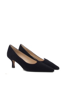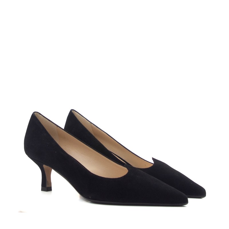Décolleté realizzato in pregiato camoscio firmato Chiarini Bologna, impreziosito dalla scollatura a v sul collo del piede. Foedera e sottopiede sono in pelle color carne e il tacco è di 5 cm. Made in Italy