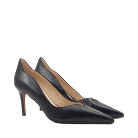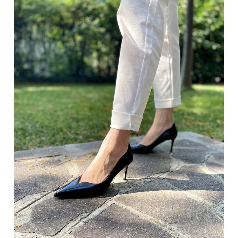 Décolleté realizzato in morbida pelle firmato Chiarini Bologna, impreziosito dalla scollatura a v sul collo del piede. Foedera e sottopiede sono in pelle color carne e il tacco è di 5 cm. Made in Italy