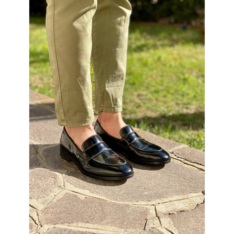 Elegante mocassino firmato FABI, realizzato in morbidissima pelle dall'effetto lucido. Fodera in pelle e fondo in cuoio. Made in Italy