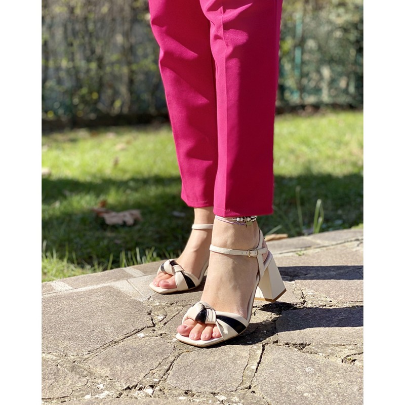 Sandalo realizzato in pelle impreziosito dal mix di tonalità. Tacco squadrato e alto 8 cm. Idale per un outfit sportivo e nello stesso tempo fashion e di tendenza come contraddistingue il gusto di CHIARINI BOLOGNA. Made in Italy.