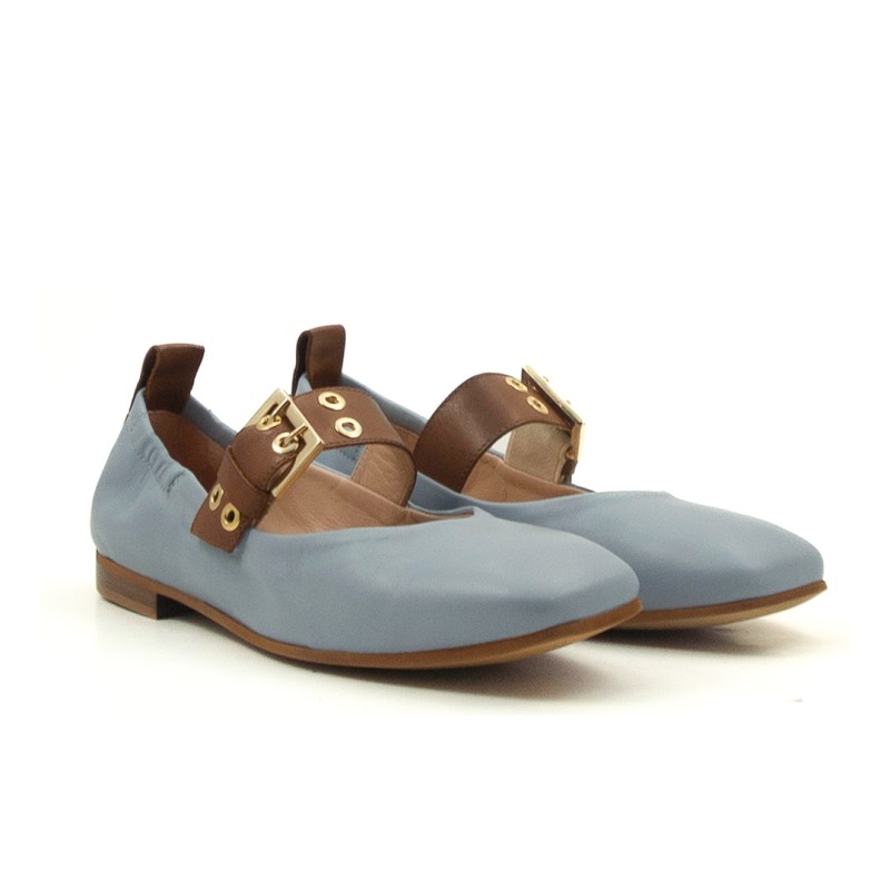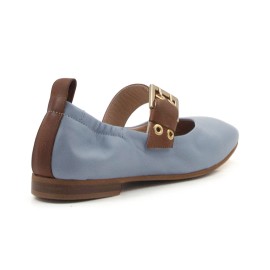 Scarpa bassa realizzata in mobidissima pelle, impreziosita dal cinturino a contrasto; fodera e sottopiede in pelle color carne. Comoda e avvolgente grazie alla lavorazine a sacchetto che la rende perfetta al piede. Made in Italy