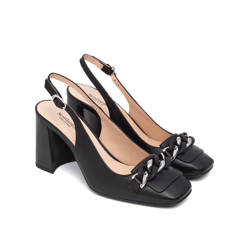 Slingback NeroGiardini, personalità e stile unico. Le calzature NeroGiardini sono realizzate in Italia, utilizzando materiali di qualità e le più avanzate tecniche di lavorazione. Ogni scarpa è il risultato della esperta competenza artigiana tramandata di generazione in generazione. Tutti i modelli sono progettati per offrire comodità e versatilità in ogni momento della giornata, dal lavoro alla serata speciale. Il reparto stile NeroGiardini è costantemente alla ricerca di nuove tendenze per offrire calzature sempre attuali e originali. NeroGiardini propone anche una collezione di borse, perfettamente abbinabili alle calzature, per un total look Made in Italy impeccabile.