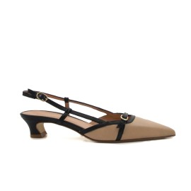 Slingback realizzata in pelle impreziosita dal laccetto e dalla fibbia. Grazie al tacco comodo è adatta a tutti i giorno. Made in Italy