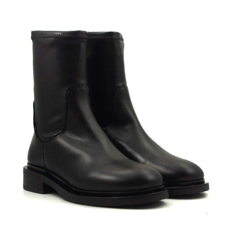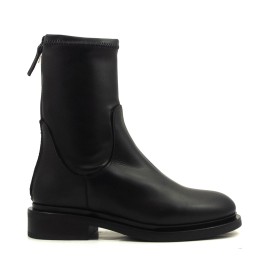Un design semplice per questo stivaletto realizzato in pelle e pelle elasticizzata per aderire alla gamba. Il fondo in gomma light e dal tacco basso. Facile da calzare grazie alla cerniera nel lato posteriore. Made in Italy.