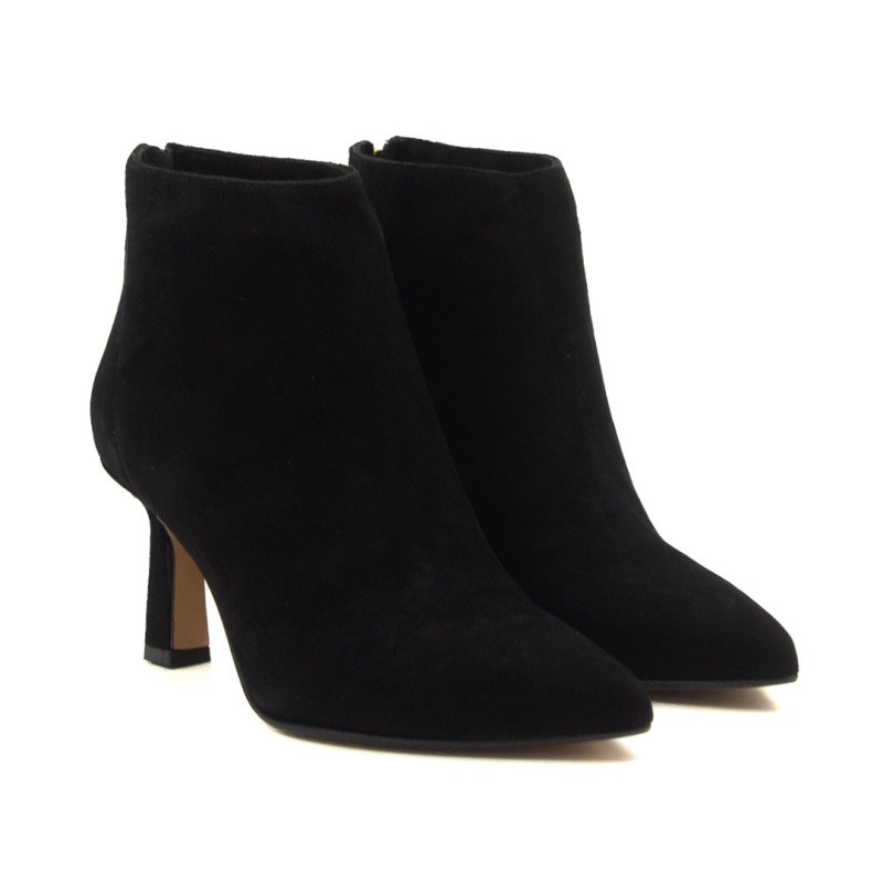 Tronchetto realizzato in pregiato camoscio con zip situata posteriormente; tacco fasciato in camoscio dalla forma Rocchetto. Made in Italy