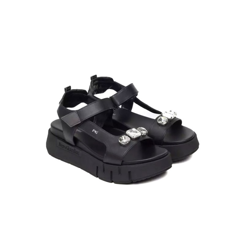 Sandali NeroGiardini, personalità e stile unico. Le calzature NeroGiardini sono realizzate in Italia, utilizzando materiali di qualità e le più avanzate tecniche di lavorazione. Ogni scarpa è il risultato della esperta competenza artigiana tramandata di generazione in generazione. Tutti i modelli sono progettati per offrire comodità e versatilità in ogni momento della giornata, dal lavoro alla serata speciale. Il reparto stile NeroGiardini è costantemente alla ricerca di nuove tendenze per offrire calzature sempre attuali e originali. NeroGiardini propone anche una collezione di borse, perfettamente abbinabili alle calzature, per un total look Made in Italy impeccabile. La produzione Made in Italy delle calzature NeroGiardini è sottolineata dal tricolore impresso sulle suole e sul packaging.